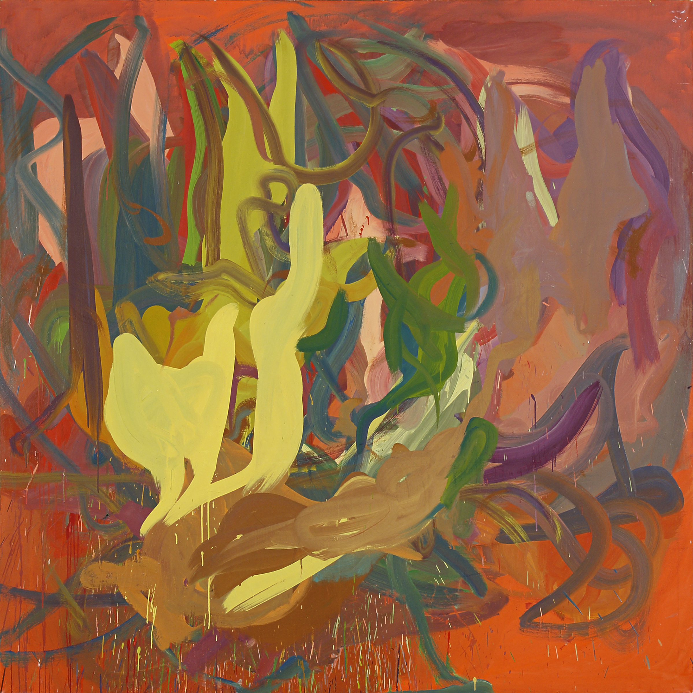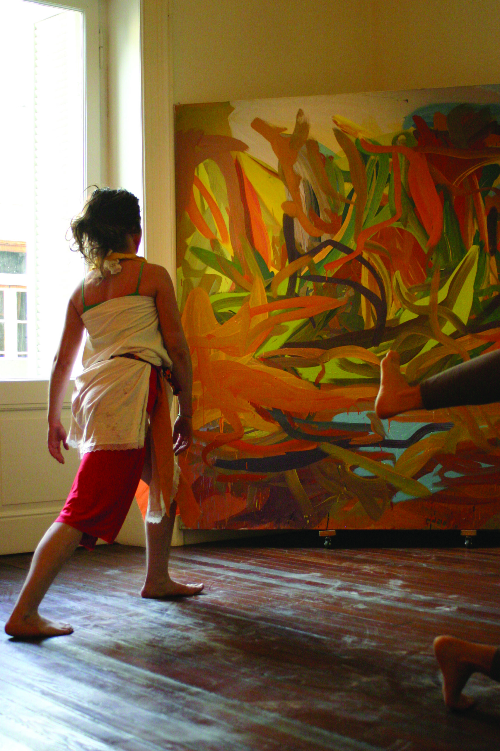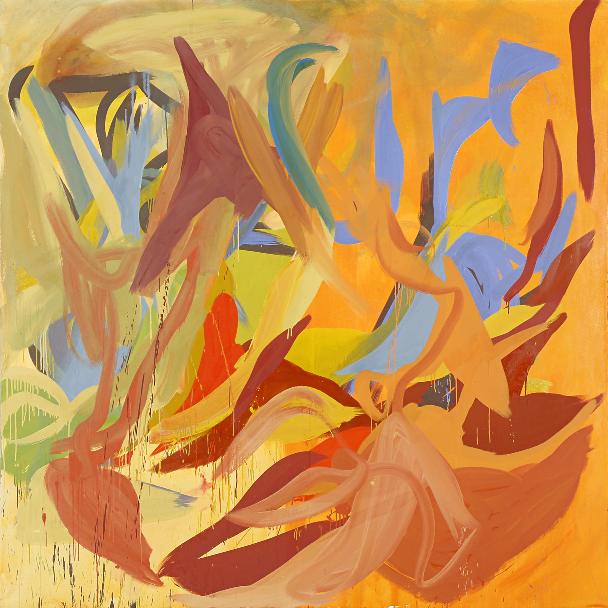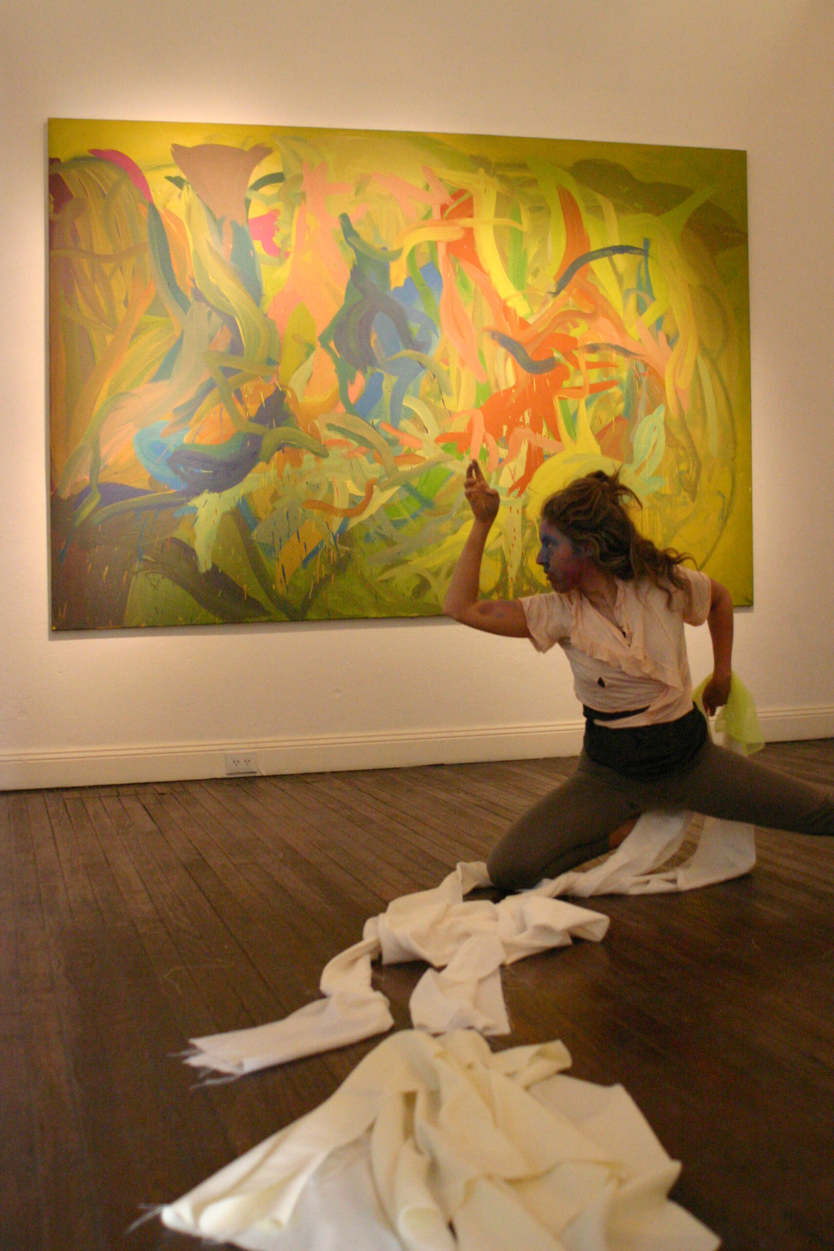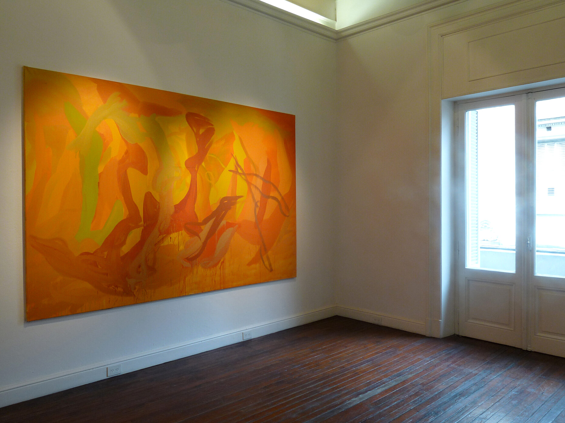 Sin embargo, Sorans invariablemente sale airosa, no sólo porque, como sucede en la tradición de la actionpainting, confía en la paradójica precisión, misteriosamente matemática, de aquello fuera de control, sino, y fundamentalmente porque, con gran carácter y una sensibilidad a la intemperie, se decide a hacer el ejercicio, y nos pide que lo hagamos, de abandonarse a todo, de disimular toda referencia, todo saber presunto o eventual parentesco para que, frente a sus febriles telas, todo sea siempre ahora.
