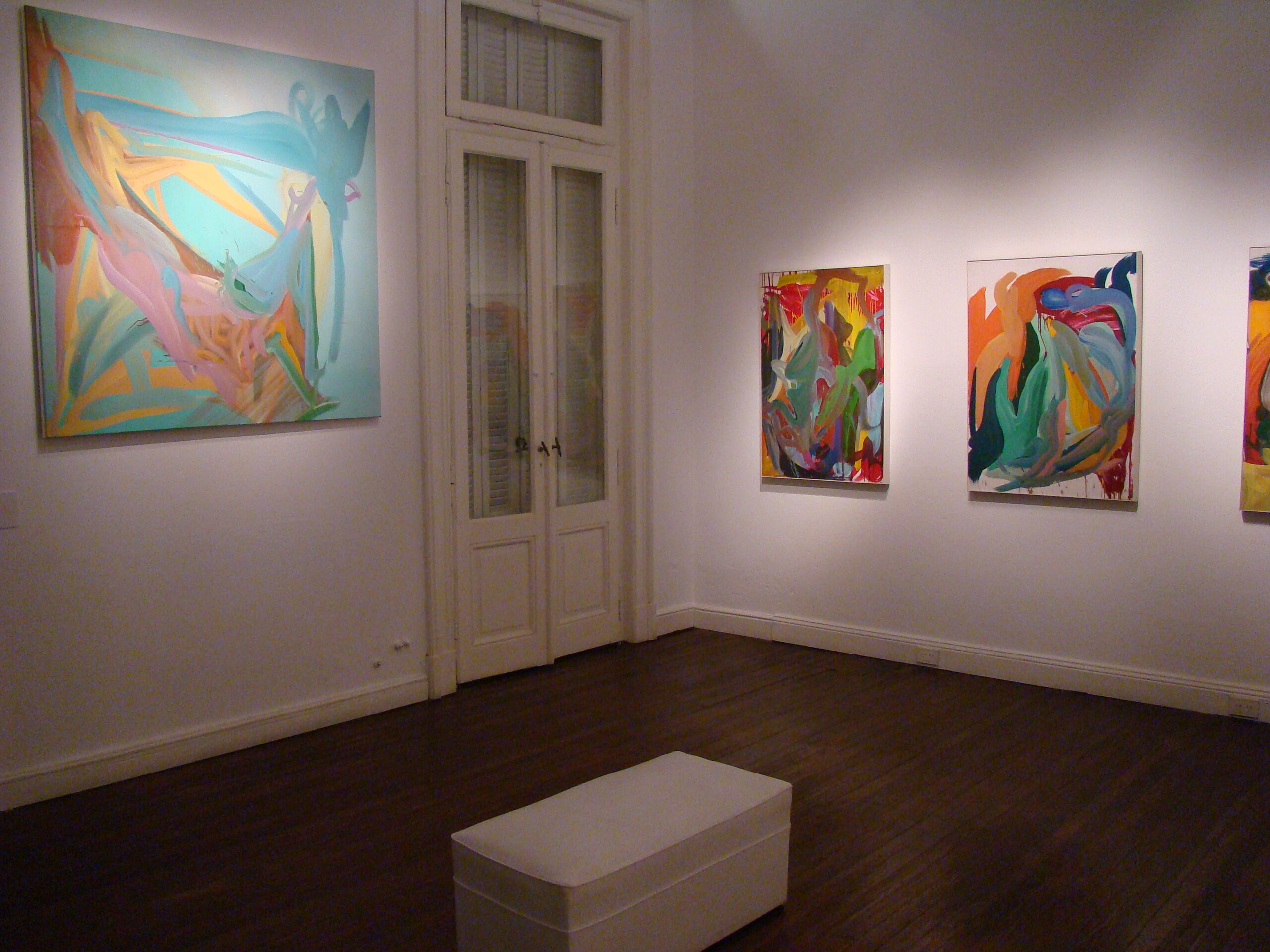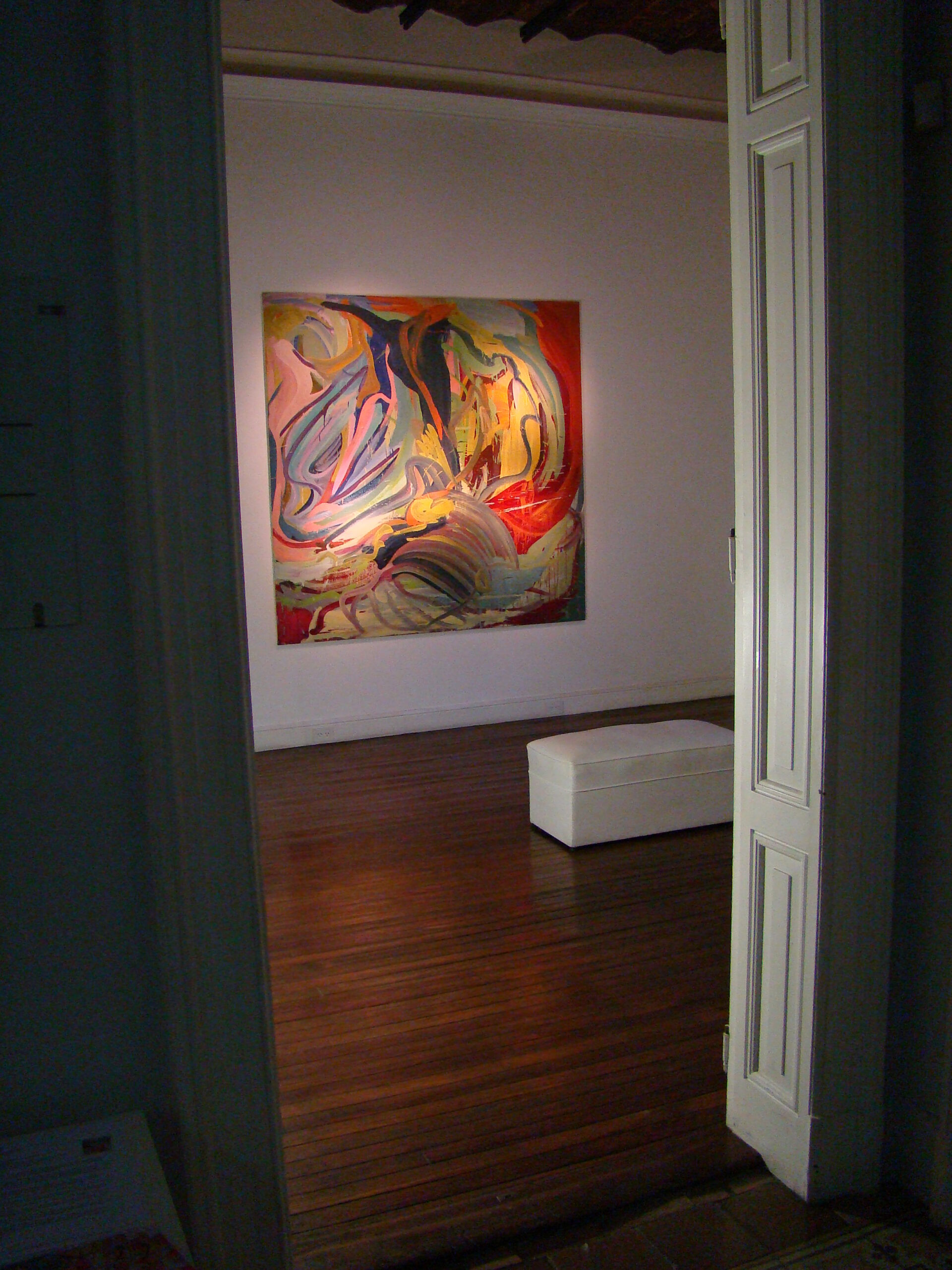 Lucía Sorans toma unos pigmentos, los humecta con aceite (y otros secretos), para dar consistencia a una materia que luego amasa meticulosa y pacientemente, y que finalmente será trasladada a la superficie de la tela o del papel a través de meditadas pinceladas. Así la pintora, entró en sintonía con su pulso de trabajo. El decisivo salto a la nueva superficie, lo resuelve con extraordinaria naturalidad ya que no comienza a pintar a partir de ese momento sino que estaba pintando desde hacia rato, solo que ahora despliega su gesto dentro de un territorio que está dispuesto a registrar con total fidelidad la descarga, sin importar si esta es un extraño y gracioso arabesco, un sinuoso y áspero traslado del pincel, un abigarrado agrupamiento rítmico, trazados rectos o curvos o cualquiera de los innumerables recursos con los que cuenta la artista para recorrer y conquistar el nuevo terreno. Ahora la superficie antes vacía la encontramos más o menos poblada. Pero nunca tanto como para dejar de percibir, cómo la extraordinaria quietud del plano, refleja la más o menos compleja trama que se fue desplegando. Violencia y tranquilidad se perciben dentro de un clima relajado nunca demasiado atiborrado ni demasiado vacío. El ilusorio espacio interior del cuadro actúa como un imán que atrae e invita a caer en el hipnótico vértigo de su interior. De pronto la pintora ve como la superficie se adueñó de sus pinceladas y en la simultánea evidencia de cómo ellas establecen su propio juego y arman su propio espacio-lugar, no le queda más que mirar extrañada esta incontrolable situación. A partir de ahí ella está casi en la misma situación que nosotros cuando nos encontramos por primera vez frente a uno de sus cuadros. Esta feliz, inquietante o extraña conjunción es posible gracias a que la imagen construida por Sorans, se encarga de no ocultar ninguna de las huellas que la llevaron a ese sorpresivo lugar. Cada pincelada es como un granito de arroz que fue dejando en el trayecto, para saber cómo retornar al lugar de origen. Este descarnado proceder (hay mucho de descarnado en las pinturas de Lucía), hace que el espacio imaginario de sus obras sea visceral, de manera que si nos dejamos atrapar por su vital circulación podemos (haciendo el camino inverso que ella), saltar a su paleta -tal vez más allá también- sin olvidarnos en ningún momento que estamos dentro de una pintura. Este camino de ida y vuelta lo podemos recorrer repetidas veces y de pronto descubrir que la sólida y a la vez vaporosa contextura de sus imágenes quizá se deba a que el clímax elegido por la artista para abandonar el trabajo, esté ubicado allí donde la cualidad de la imagen, se armó sin desconocer su origen, sin ocultar su pasión por pintar, sin dejar nunca de dar consistencia a lo que sí.
